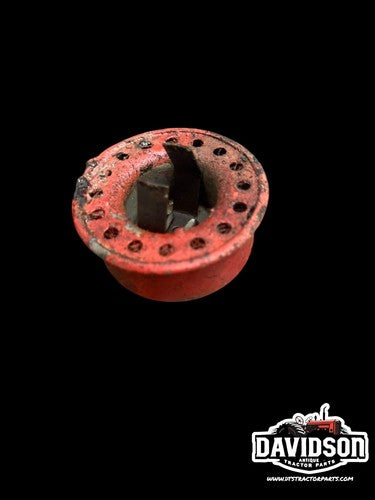 The product is a vintage Ford 8N tractor engine oil fill cap and vent from 1948. This part is compatible with the Ford 8N tractor model and is a genuine vintage piece that is perfect for collectors or those looking to restore antique and vintage equipment. The oil fill cap and vent are essential components for maintaining the engine of a vintage tractor, ensuring optimal performance and durability.